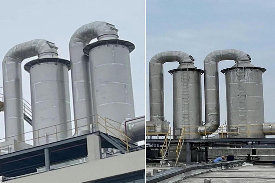 在磷化工、石墨、有色冶煉等行業,生產排放的飽和濕煙氣與低溫環境空氣接觸時,在煙氣溫度下降過程中,煙氣中的水蒸氣過飽和凝結,凝結水滴折射和散射光線,使煙羽呈白色或灰色,稱為濕煙羽。由于冬季溫度較低,相關問題的環保投訴較多。那么,有哪些種煙氣脫白技術?各種煙氣脫白的技術原理是怎樣的?1、冷凝相變煙氣脫白技術冷凝相變煙氣脫白原理為:煙氣經濕法脫硫后,含濕量上升,為B狀態,進入換熱消霧模塊后。干態空氣A入換熱消霧模塊兩者交換后,A溫度上升,含濕量不變,相對濕度降低,處于C。B煙氣,溫度降低,相對濕度不變,含濕量降低,液滴析出,轉為D。D和受熱C流出換熱消零模塊,在氣室中混合,使D溫度下降,濕度降低:C溫度上升,相對濕度上升,兩種狀態的煙氣混合,最終達到F狀態,AF連線始終處于不飽和狀態,因此,不會出現可見白煙或霧氣團。可以看出,冷凝混風技術是煙氣脫白的較好技術路線,特別是在北方寒冷地區,單純的煙氣再熱很難消除煙囪白煙。2、低電耗離子束煙氣脫白技術低電耗離子束煙氣脫白原理為:高速電子射流擊穿煙氣,產生正負離子體基團,煙氣中氣溶膠、飽和水滴、微小顆粒物在離子束的撞擊下,不斷發生凝聚效應,顆粒物和水滴快速凝聚成團,在重力作用下,落到離子束除變器底部流入脫硫塔或廢水收集池,達到降解顆粒物,氣溶膠和水零的目的。廢氣中的氨氧化物,由高速電子束提供能量,快速與氨氣發生還原反應,生成副產物水。低電耗離子束煙氣脫白優點:1.放電產生的離子體中,電子能量高,幾乎可以和所有的惡臭氣體分子作用。2.反應快,不受氣速限制。采用防腐蝕材料。3.用電成本低,操作極為簡單,無需派專職人員看守,基本不占用人工費。4.設備啟動、停止十分迅速,隨用隨開,不受氣溫的影響。